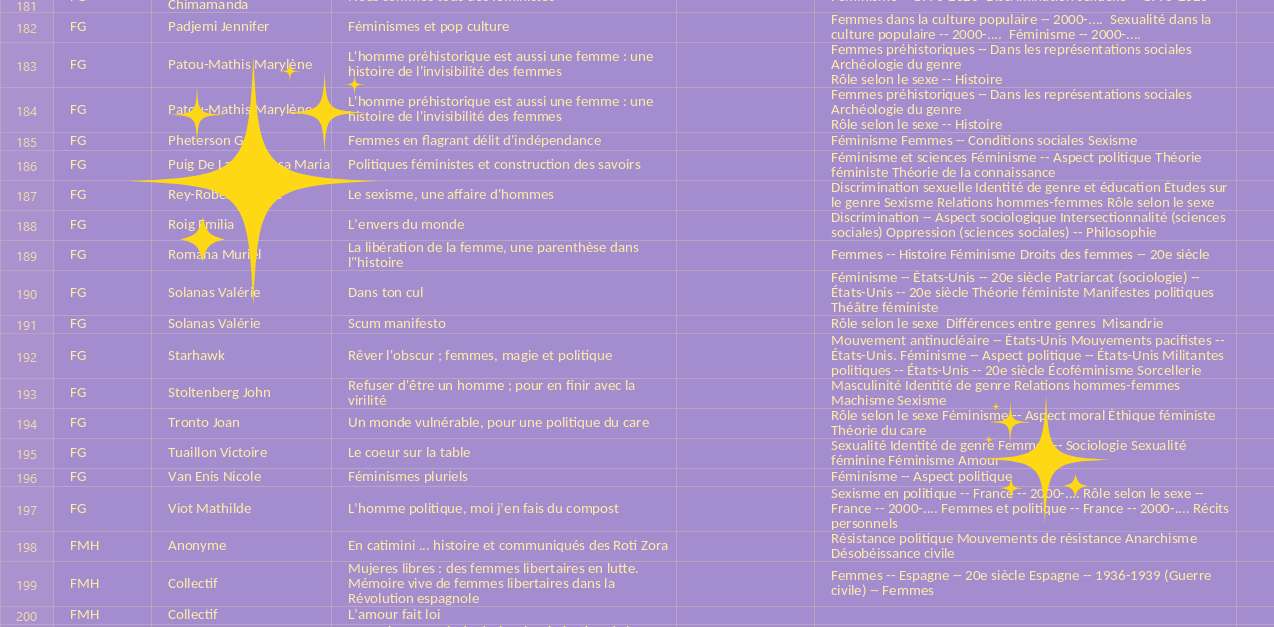 À savoir que nous fonctionnons avec des fiches papier pour suivre les emprunts donc il n’est pas possible de savoir à l’avance si un livre sera disponible lors d’une permanence. C’est déjà une grande avancée pour nous que de diffuser notre catalogue ! On espère qu’il sera utile !