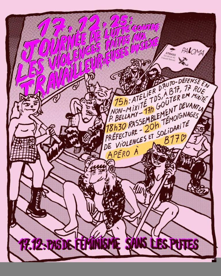 Le mercredi 17 décembre est la Journée internationale contre les Violences faites aux TDS (Travailleuses et Travailleurs du Sexe). Pour l’occasion, l’association nantaise Paloma organise une journée de lutte.